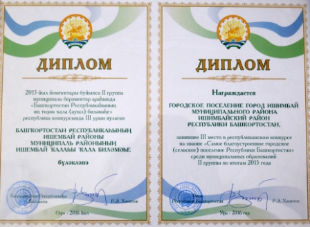 занявшее III место в республиканском конкурсе на звание "Самое благоустроенное городское (сельское) поселение Республики Башкортостан" среди муниципальных образований II группы по итогам 2015года.