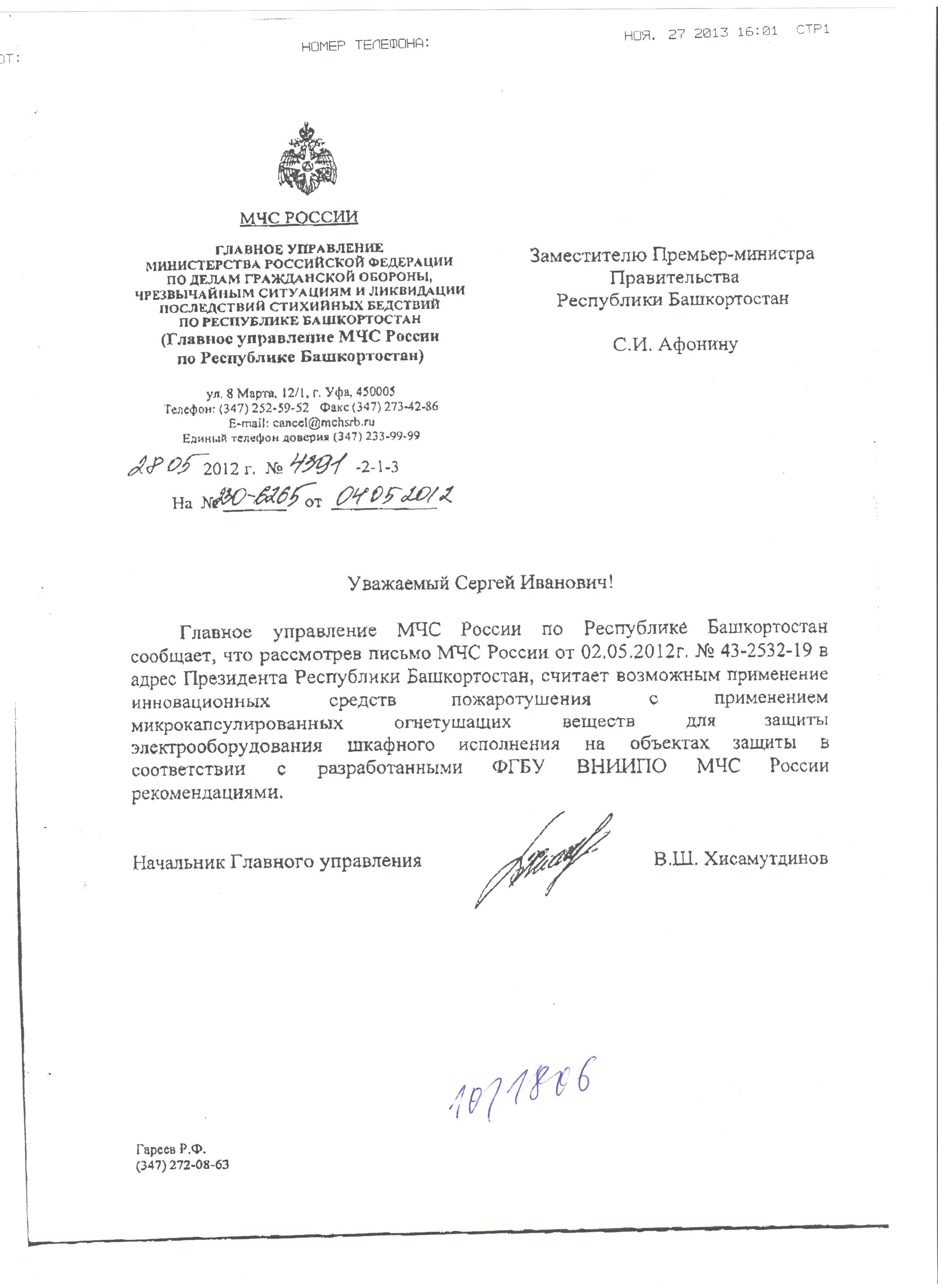 На основании вышеизложенного Главное управление МЧС России по Республике Башкортостан рекомендует выполнять эту защиту средствами на основе микрокапсулированных огнетушащих веществ в соответствии с разработанными ФГБУ ВНИИГТО МЧС России рекомендациями.