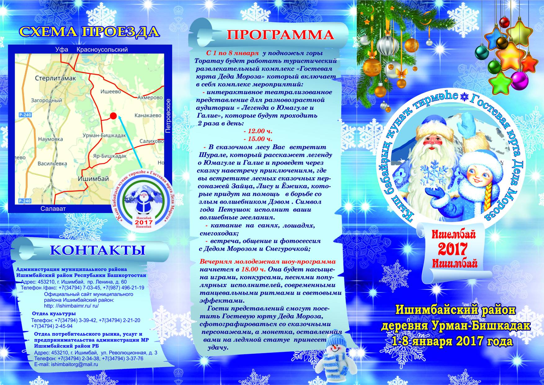 С 1 по 8 января у подножья горы Торатау будет работать туристический развлекательный комплекс «Гостевая юрта Деда Мороза», где будут проводиться следующие мероприятия: